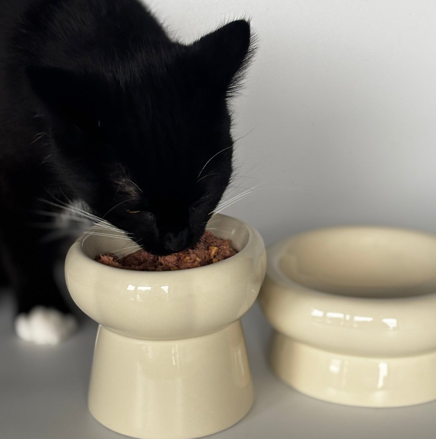 Die erhöhte Form der Näpfe sorgt für eine natürliche, rückenschonende Haltung beim Fressen und Trinken. So werden Nacken und Gelenke entlastet – ideal für Katzen jeden Alters. Auch empfindliche Tiere profitieren von der angenehmen Höhe, die das Schlucken erleichtert und die Verdauung unterstützt.